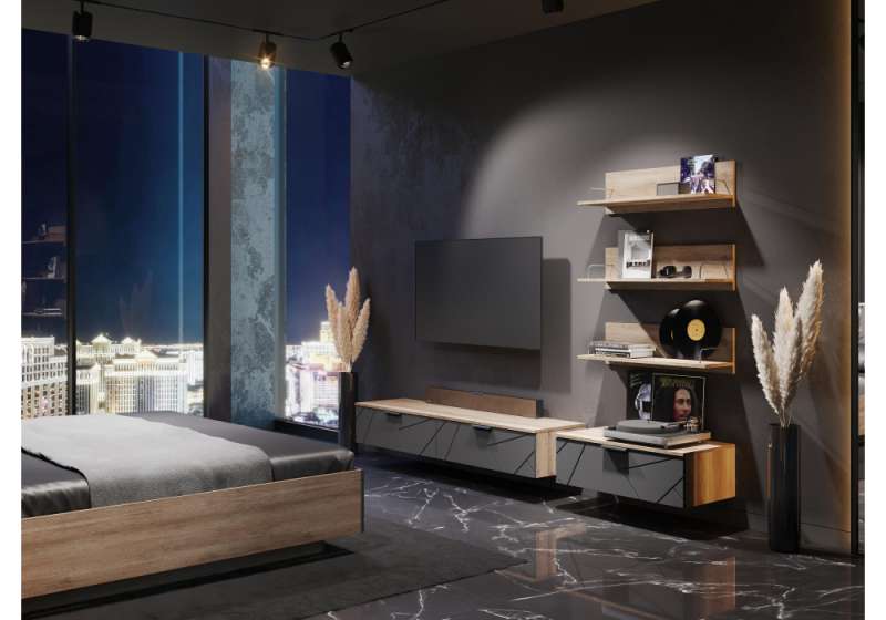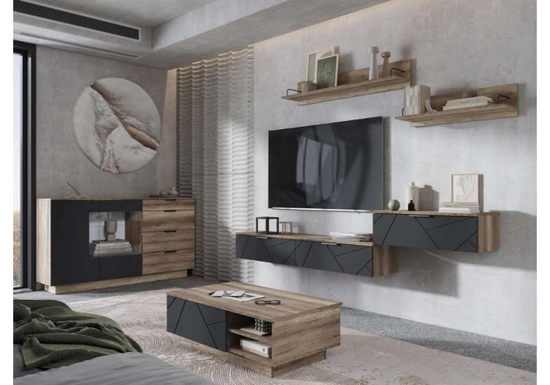 ТВ-тумбы Диамо ТБ 03 софт графит / дуб каньон (160,2x40,2x27,8)