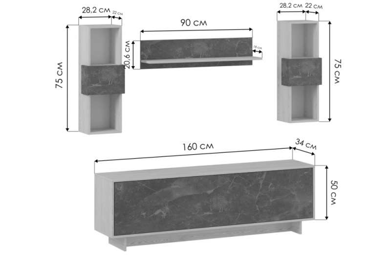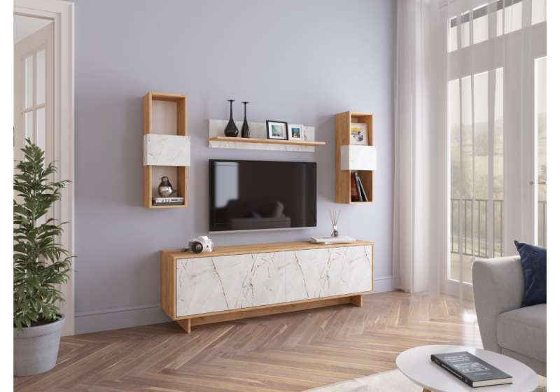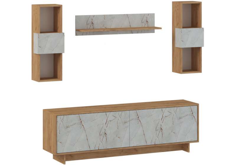 Готовые гостиные Огюст Мини дуб золотой / каспий светлый (200x34x)