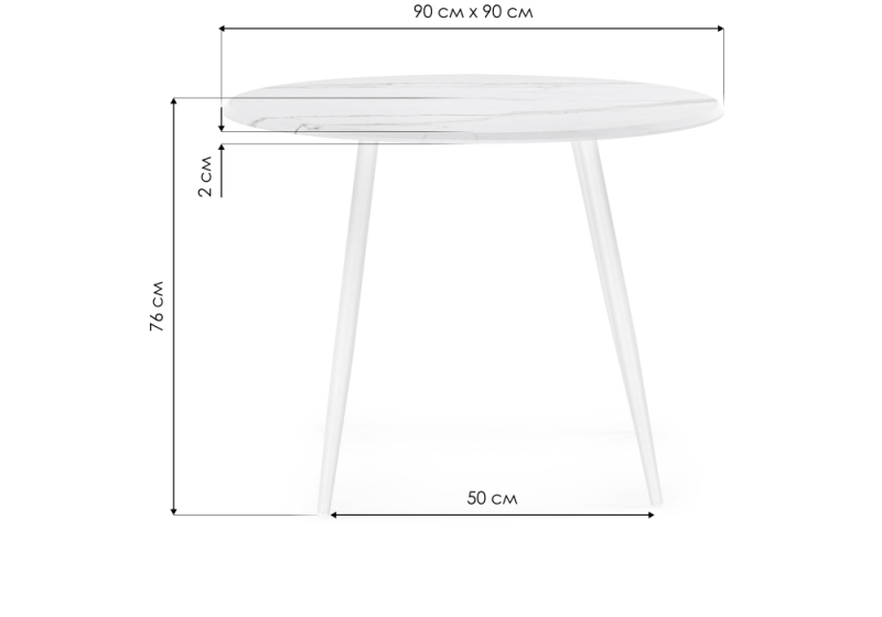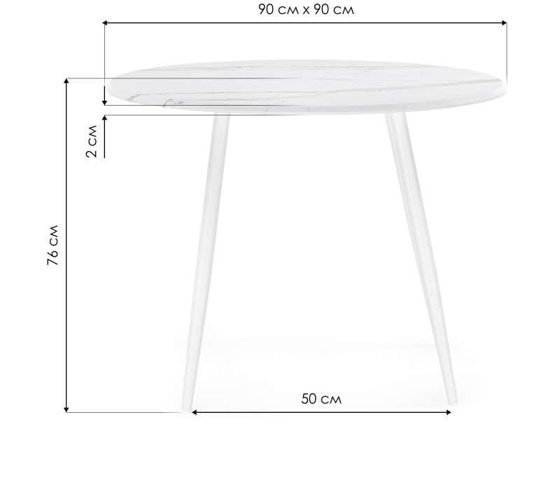 Расстояние между ножками: 50 х 50 см. Толщина столешницы: 2,2 см.