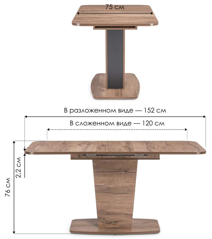 Длина стола в разложенном виде: 152 см.