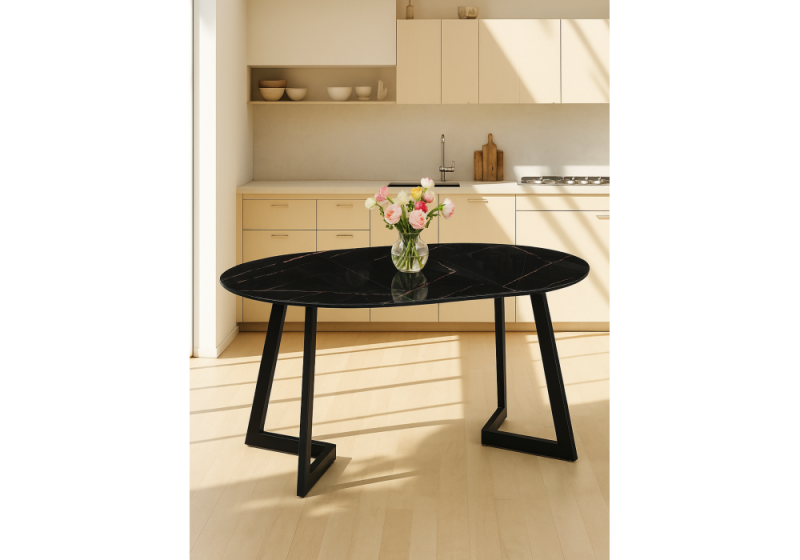 Стол стеклянный Алингсос 100(140)х100х76 обсидиан / черный (100x76).