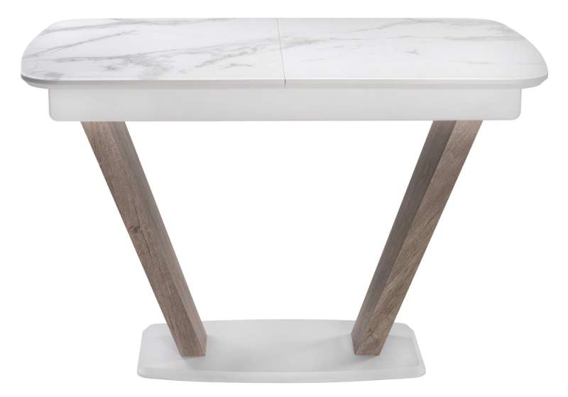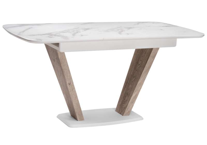 Стол стеклянный на тумбе Петир белая шагрень / дуб с пилением (80x77).