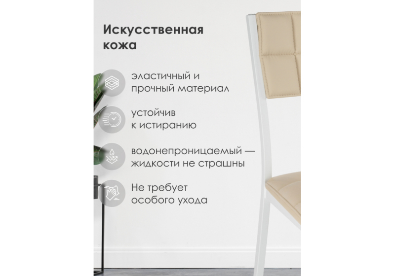 Стул на металлокаркасе Бекал кожзам d1 / белый (39x51x84)