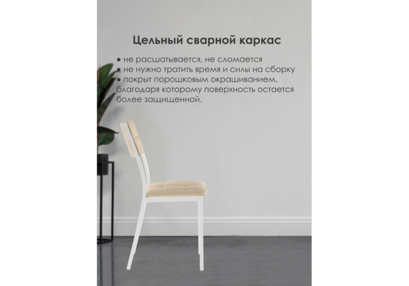 Стул на металлокаркасе Бекал кожзам d1 / белый (39x51x84).